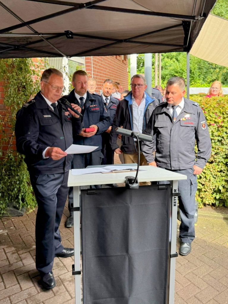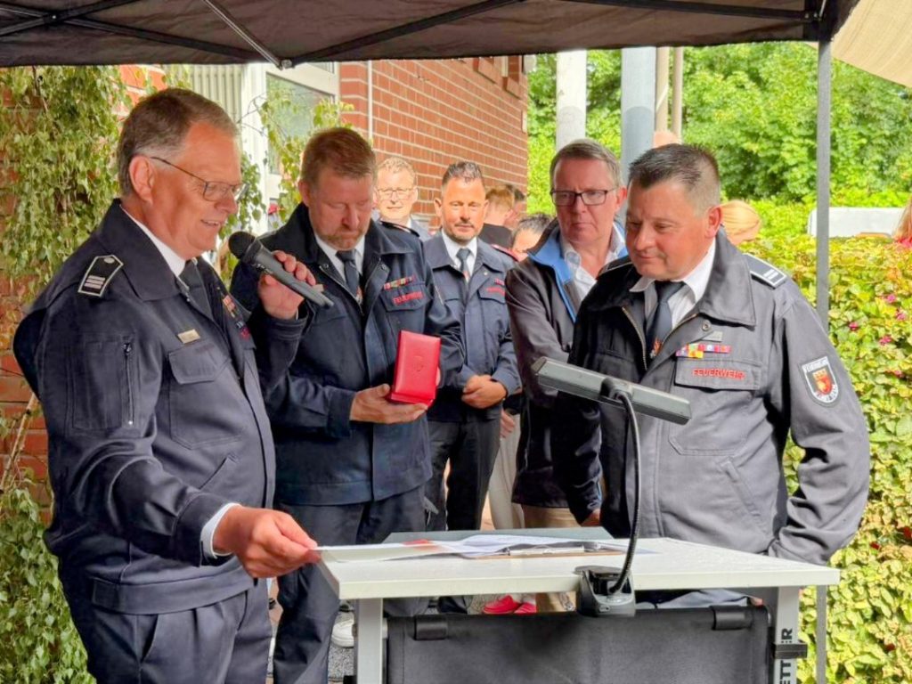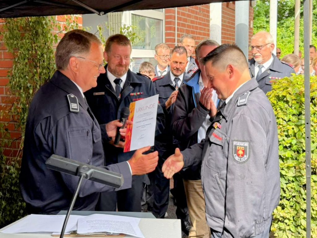 Am 02.08.2025 erhielt Christoph-Laarmann-Quante das Deutsche Feuerwehr– Ehrenkreuz in Bronze. Christoph war einige Jahre Löschzugführer des Löschzuges 3, danach Einheitsführer der Einheit Netteberge in der Freiwilligen Feuerwehr Selm und hat sich dort besonders verdient gemacht.
